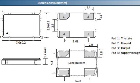 Tristate function (pad 1) | >70% of Vcc to pad 1: enable oscillator output | |||||||||||||||||||||